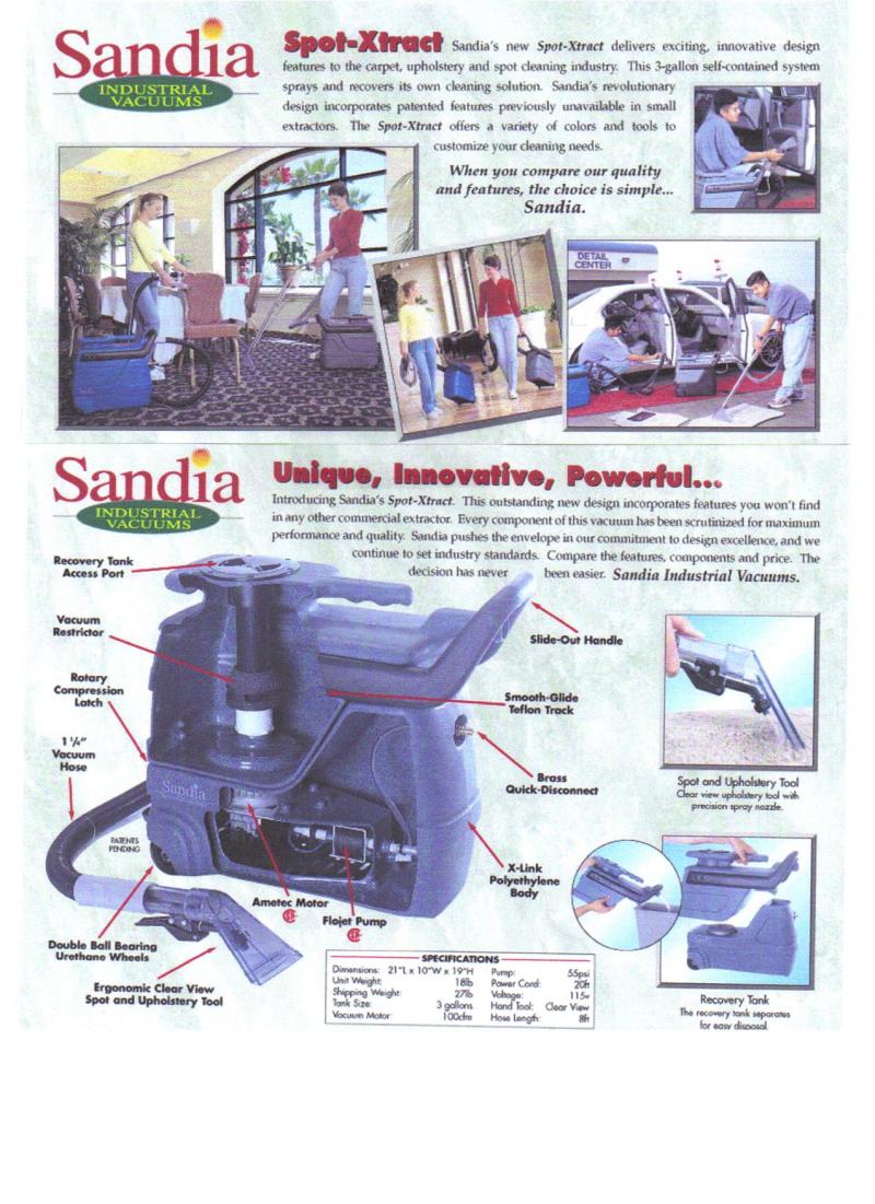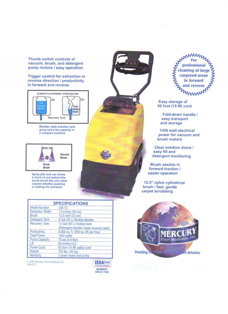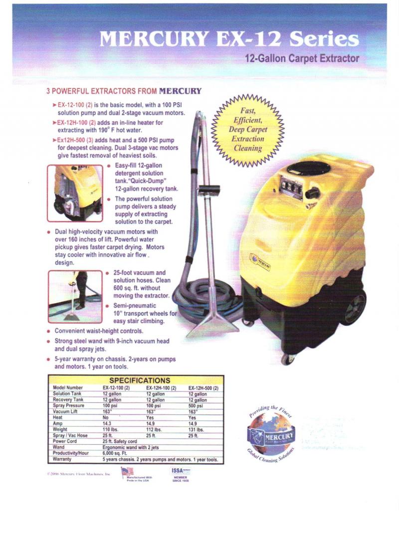 3 POWERFUL CARPET EXTRACTORS/100PSI; 100PSI with heat; 500PSI with heat, with 163" water lift 12-gal solution and recovery tank
