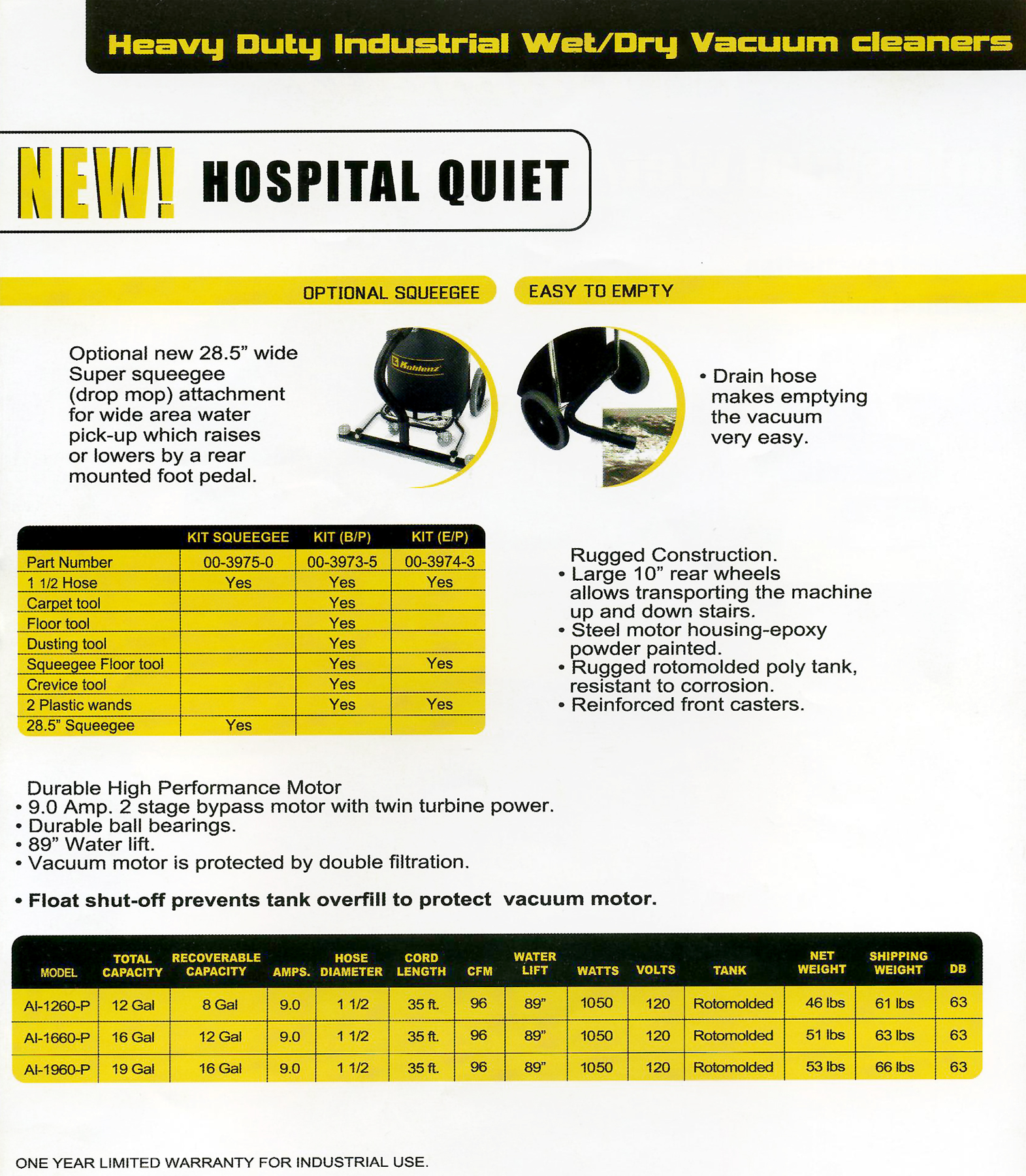 7.0 Amp. motor extra silent, 50'3-wire cord.