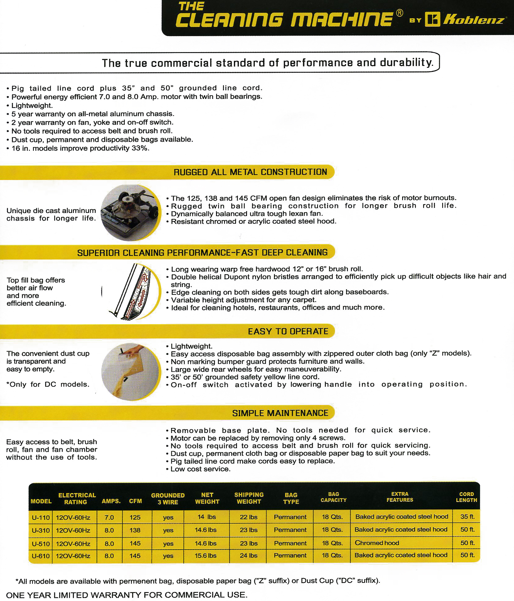 Heavy Duty Commercial Series. 8.0 Amp. motor. All metal construction,