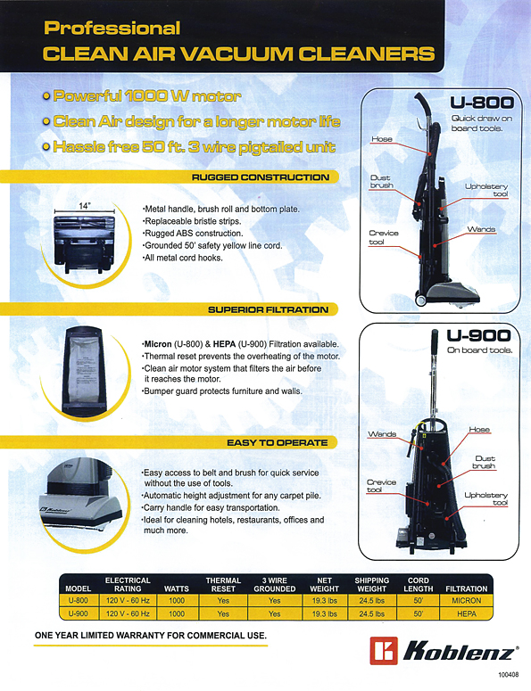 Heavy Duty Commercial Series. 8.0 Amp. motor. All metal construction.